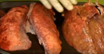 他們將抽了20根煙後的肺剪開來做檢查,裡面的恐怖景象比完全烤焦黑掉的肉還噁心!