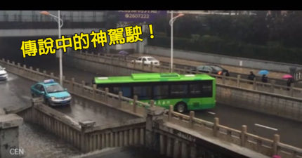因為前面道路開始淹水這巴士看起來就要完蛋了,但下一秒公車司機居然開始實現大家公認「不可能」的強控回轉!