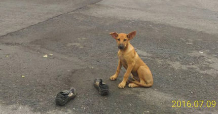 工人們在工程完工後留下他在路邊,結果他從垃圾袋裡叼出來了一雙鞋讓人「發現當中意義後就噴淚」了…