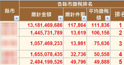 這名細心網友分享出了台灣22縣市的繳稅排名,沒想到高雄竟然沒上前五名?!