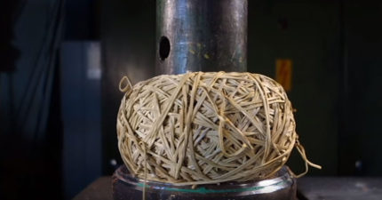 當液壓機挑戰各種不同的球類時,壓下籃球的那一刻真的讓我意外了!