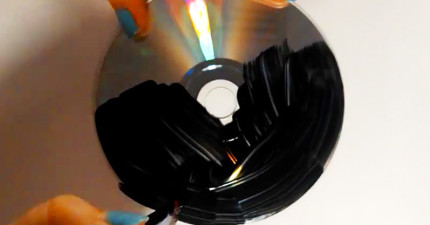 她在家中找到了一些沒有用的CD然後塗黑,當她拿出螺絲起子時我才驚覺之前花錢買裝飾品都太浪費錢了!