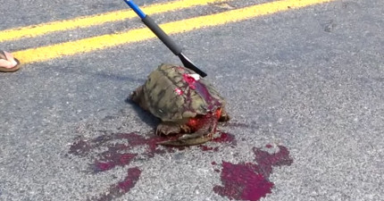 夫婦路上看到一具血淋淋的烏龜被車輾過屍體,好險好奇拿一根棍子碰了一下