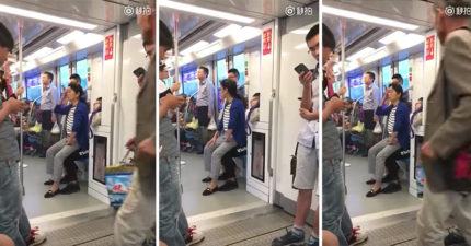 阿姨在地鐵上逼年輕人讓位被拒絕後,兩人和諧的「合併在一起」讓周圍的人開始流汗! (影片)