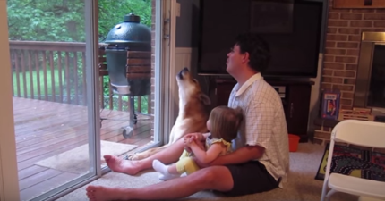 當父女開始「嗷嗚」叫的時候,這隻狗狗就忍無可忍直接示範教他們什麼才是正統的「嗷嗚」!