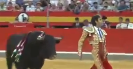 這位明星鬥牛士正背對牛接受觀眾掌聲,但下一秒已經血腥恐怖到我看不下去了…
