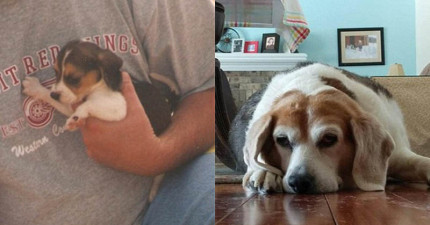 13張毛寶貝「第一張和最後一張照片」的對比圖。我已經哭到眼淚鼻涕分不清了…