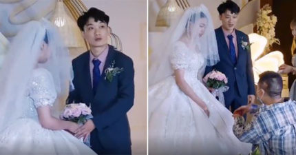 伴郎突向新娘「下跪獻戒指」 賓客全傻眼