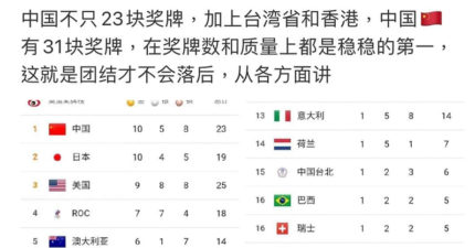 小粉紅把台灣、香港獎牌數一起算 爽喊「穩拿第一」:團結才不會落後