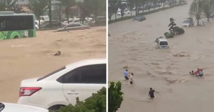 影/中國恐怖暴雨!水淹地鐵車廂「月台全是大體」
