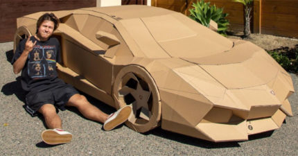 影/買不起超跑!他手作「紙板藍寶堅尼」 「路上爽開」駕駛全傻眼