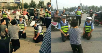 這對中國河北的母子不爽酒駕被抓,最後交通警察居然對他們下跪?!