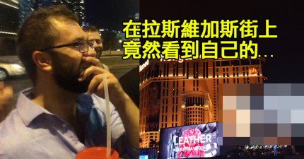 這群好哥兒惡整準新郎在拉斯維加斯買了一個假的超大廣告看板,讓他馬上變成了拉斯維加斯女生最想要的男人!