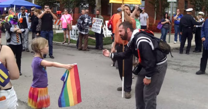 面對激動的反同人士,這名國小一年級女孩的「超帥氣」反應讓所有路人都和她擊掌!