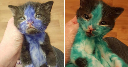 一個月大幼貓遭人用「油性筆塗滿」  救援人員幫洗澡反應令人心疼