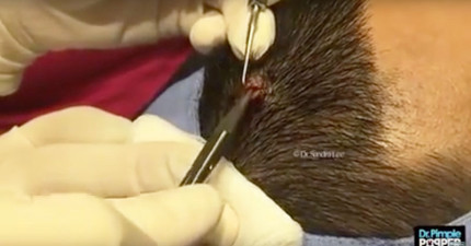 醫生在這名男子頭上的囊腫輕劃一刀後,取出來的「魔角」驚悚到讓我感覺今晚可以睡個好覺了…
