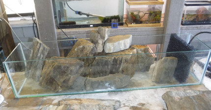 他將石頭放進玻璃缸準備DIY成「超夢幻水中世界」,成品美到讓我真的很羨慕住在裡面的魚啊!