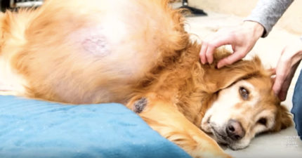 这只黄金被找到时身上带着「身体一半大的20公斤肿瘤」,因次没办法需要马上动手术。