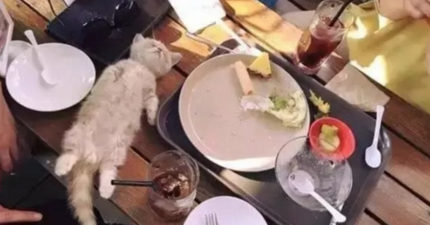 小猫咪跑到餐桌上不小心睡着已经很萌,但主人一将「这个用具」交到他手上时可爱值已经突破天际了!
