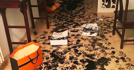 他們回家時發現家裡被墨水龍捲風掃過怒火沖天,但一看兇手的「楚楚可憐表情」就瞬間都怪自己不好!