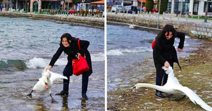 她在岸邊發現了美麗的天鵝就決定要拉他來自拍,但天鵝最後的「超悲慘結局」會讓你對人類徹底失去希望!