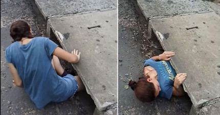這個女生聽到下水道傳來的微弱聲音之後突然往洞口鑽進去,當出來時她手上拿的東西絕對會讓你忍不住拍手叫好!