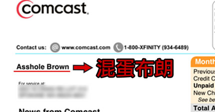 國外一名男子收到有線電視帳單卻發現他的名字被改成了”Asshole”…