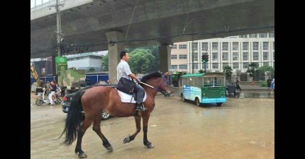 男子受夠了塞車 回歸最原始的初宗「以馬代步」上班