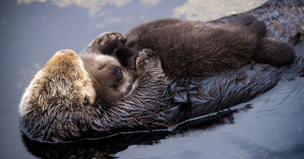 海獺寶寶躺在媽媽身上睡覺爆紅 媽媽趁寶寶「抱住」太萌
