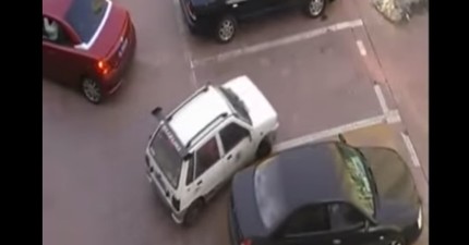 紅車準備倒車入庫時被小白車硬生生插隊…結果的發展讓小白車後悔死了!