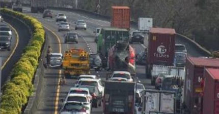 國1南下「5車連環撞」 嚴重紫爆!時速剩13公里