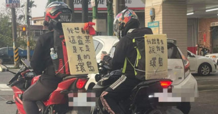 她揹紙板「我跟男友說我要環島」 身旁男友「用看板1句話回嗆」網笑翻