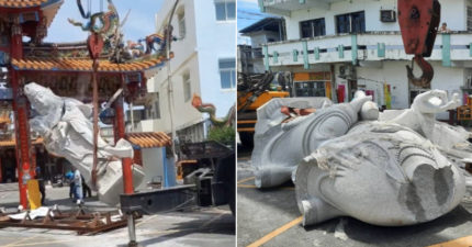 吊掛出包!觀音像「瞬間斷頭」影片曝光 工作人員崩潰:賠死了