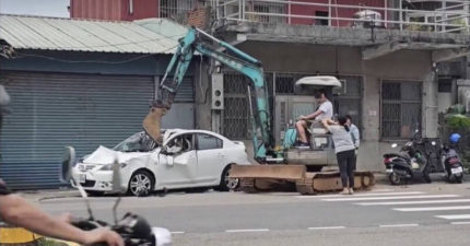 龍潭人太狠?桃園男家門前開怪手「鏟爛轎車」嚇壞路人 真相曝光