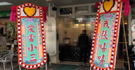 「我張嘻嘻,愛當小三」台南飲料店出現驚人花圈 本人現身回應了