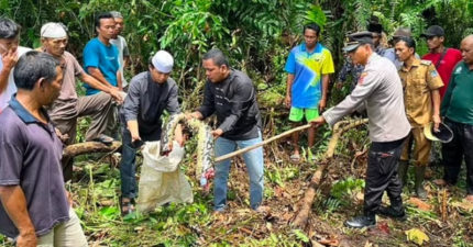 (兒童不宜) 女子採橡膠失蹤 一旁7公尺蟒蛇「腹部隆起」剖開後眾人嚇傻