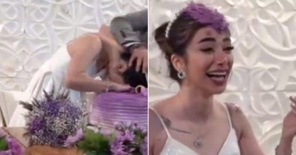 新郎「突將新娘頭壓進蛋糕」 網驚:她快哭了