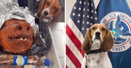 偵查犬聞出行李箱裡的「烤乳豬」:你是盡責還是想吃!
