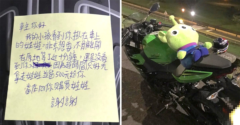 重機掛娃娃被拿走!車主驚見家長留紙條「我孩子想要」:500元給你 最後調監視器找到人