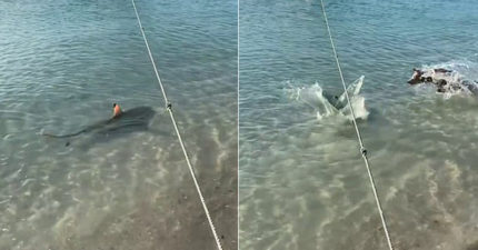 影/發現主人被盯上…猛犬直接「下水決鬥」鯊魚反應太孬!