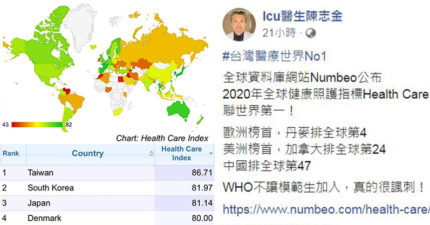 台灣蟬聯「全球健康照護指標」冠軍 進不了「WHO」網嘆:誰才有資格?
