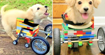 萌犬出生就「沒有前腳」被主人丟掉 男童「用樂高打造小輪椅」送牠當禮物!