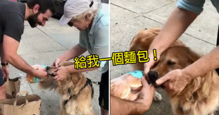 呆萌阿金「聞到麵包味」當街搶劫 堅持不鬆口「拼命拔河」主人笑翻