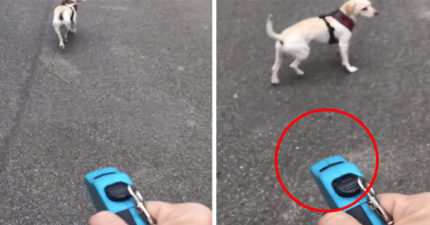 影/遛狗半路「牽繩斷掉」超緊張 主人裝冷靜「空氣牽狗」