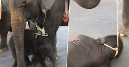 遊客拍小象寶寶「累到不支倒地」心碎畫面 母象背遊客仍「心疼護子」園方嘴硬:牠們很快樂!