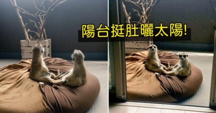 寵物狐獴「大叔式放風」被主人抓包 聽到開門聲「秒回頭」:你回來囉?