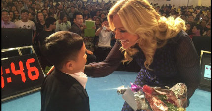內衣大亨看到「小男孩粉絲」開心抱起合照,沒想到台下女士大喊「放下我老公!」