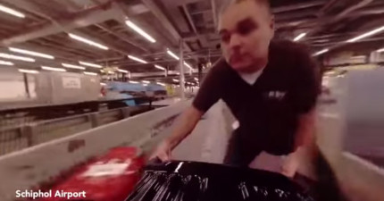 他在行李箱裝上攝影機,讓你看到你的行李Check-In後真正發生的真實過程。