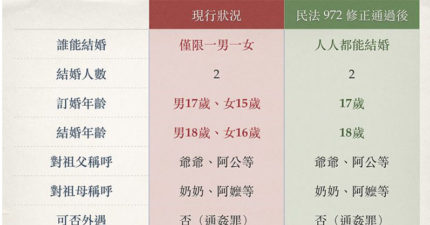 妈妈分享「流言终结民法972变动列表」,霸气呛:同志婚只有「早秋的」受害啦。