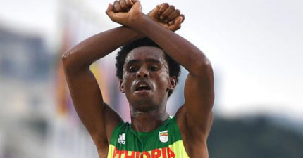 這名勇敢的馬拉松選手得銀牌時做出「這個手勢」,但這可能讓他回國後立刻遭到清算殺死…